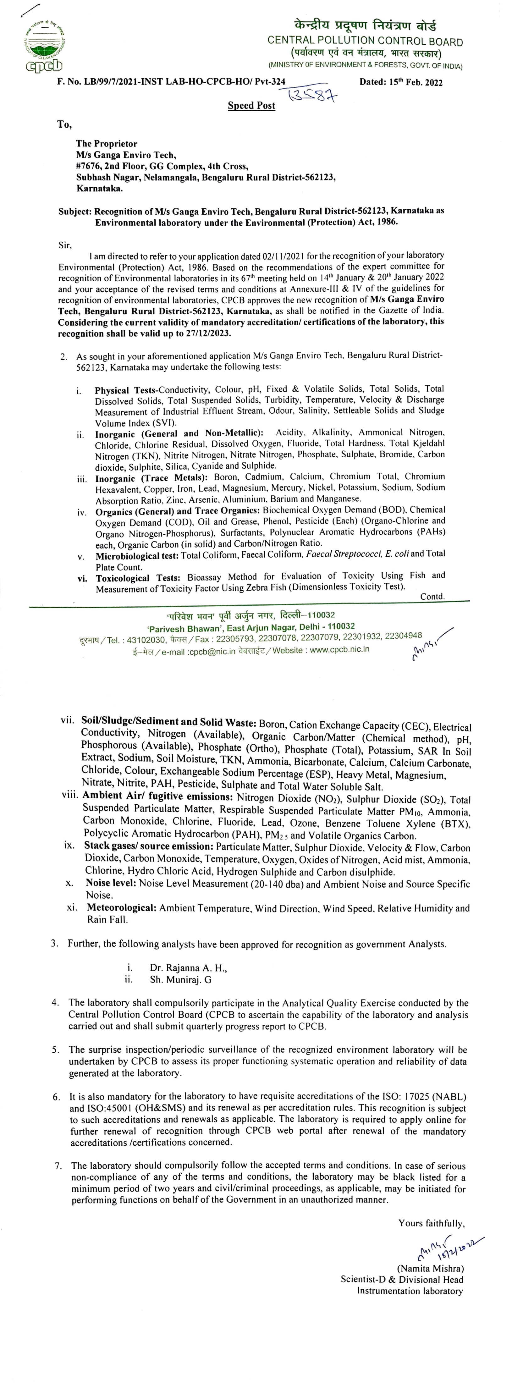 Ganga Enviro Tech (GET) has been recognized by following accredited boards